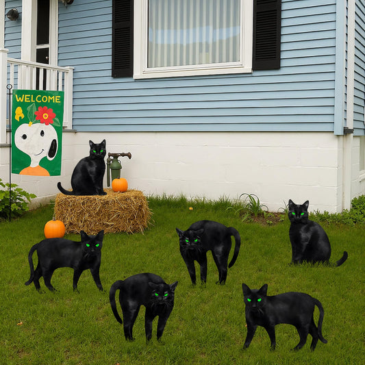 Bunny Chorus Halloween Decorations Outdoor: 6ct Black Cat Decor Yard Signs with Stakes, Scary Silhouette with 3D Visual Furs, Corrugated Plastic, Waterproof Lawn Decorations for Kids Family Home
