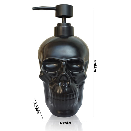 Caahanjia Ceramic Skull Soap Dispenser, Refillable Halloween Liquid Hand Soap Dispenser for Bathroom and Kitchen, Halloween Skull - Black