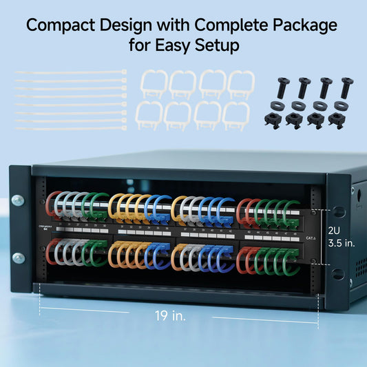 Cable Matters [UL Listed] 48 Port Patch Panel Rackmount or Wall Mount 19-Inch, 2U Cat6 Network Patch Panel for 10 Gigabit Ethernet, 110 or Krone Impact Tools Compatible