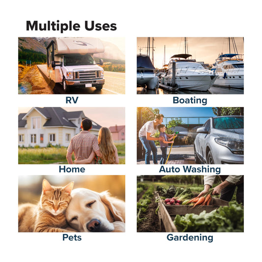 Camco Tastepure RV Water Filter - New & Advanced RV Inline Water Filter with Flexible Hose Protector - GAC & KDF Filtration - Made in USA - Camping Essentials for Fresh Drinking Water (40043)