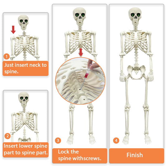 CAMIRUS 5.4FT Full Size Halloween Skeleton, Life Size Posable Skeleton with Glowing Eyes Scary Sound, Plastic Skeleton with Movable Joints for Halloween Decoration
