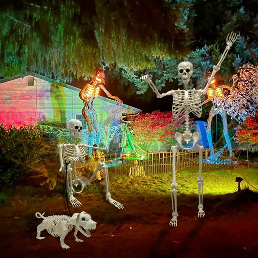 CAMIRUS 5.4ft Skeleton Halloween Decoration, Life Full Size Skeleton with Dog Skeleton, Posable Human Skeletons Realistic Plastic Bones for Halloween Haunted House Scary Decor