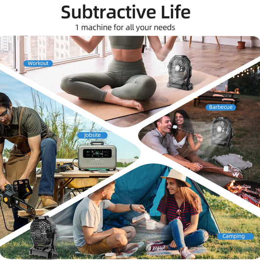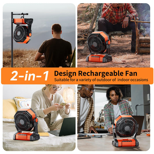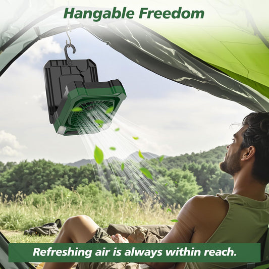 Camping LED Fan with Light, 40000m Rechargeable Battery Powered Outdoor Tent Fan with Light and Hook, 6 Speed, Personal USB Desk Fan for Camping, Fishing, Power Outage,Hurricane, Worksite