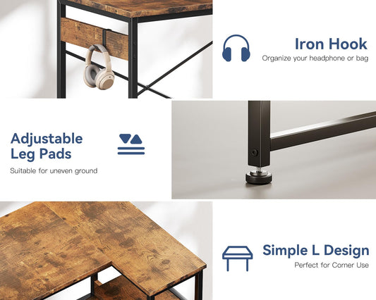 Casaottima L Shaped Computer Desk, 40 Inch Small Corner Desk with Storage Shelves & PC Stand, Reversible Gaming Desk for Bedroom, Modern Writing Study Table for Home Office, Vintage