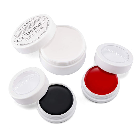 CCBeauty Halloween Clown Makeup Kit, White Black Red Face Body Paint Stick, Cream Skeleton Joker Skull Mime Foundation Makeup, Hypoallergenic Face Painting Set for SFX Cosplay Costume Party