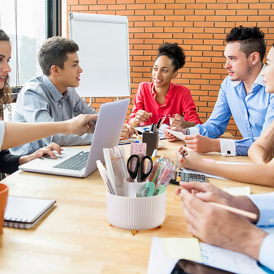 Cayxenful Pencil Holder For Desk,5 Slots 360°Degree Rotating Desk Organizers And Accessories,Desktop Storage Stationery Supplies Organizer, Cute Pencil Cup Pot For Office, School, Home (B-White)