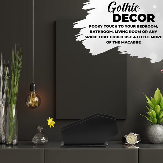 CEFRECO Coffin Brush Holder - Gothic Wooden Makeup Organizer for Vanity - Spooky Halloween Decor for Bathroom, Living Room or Bedroom - Witchy Gifts for Women -Black - 11x6x4 Inches
