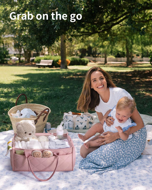 CEI-CEI Baby Diaper Caddy Organizer Large Nursery Storage Basket with Handles for Newborn Essentials, Portable Car Organizer for Diapers(Pink)