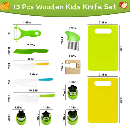 Chanking 13 Pieces Kids Safe Knife Set for Real Cooking Child-Friendly Plastic Chef Tools Montessori Kitchen Toys for Toddlers with Bright Colors Gifts for Boys and Girls