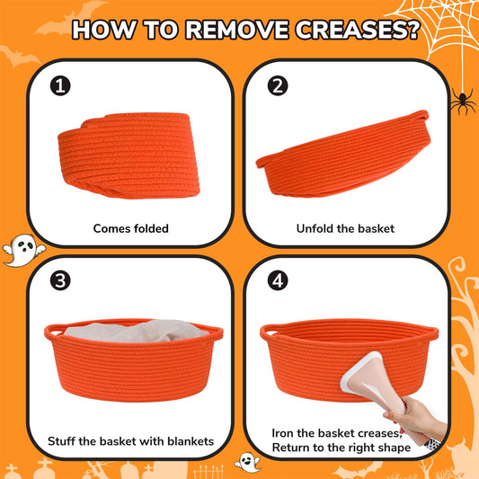 CHICVITA Halloween Basket for Gifts, Boo Basket for Gift Empty, Rope Decorative Baskets with Gift Bags & Ribbon for Baby Girl, 12"x 8"x 5"