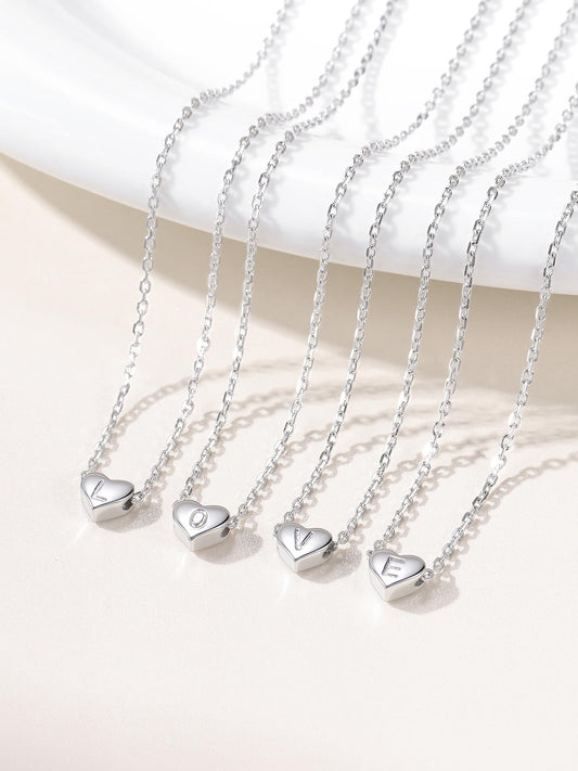ChicSilver Monogram Necklace Gift for Women 925 Sterling Silver Heart Script Initial Jewelry Letter Pendant Halloween Necklace (Letter L)
