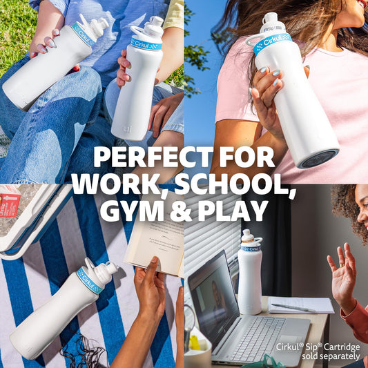 Cirkul 32oz. Blush Pink Stainless Steel Water Bottle Starter Kit with Pink Lid and 2 Flavor Cartridges (1 LifeSip Strawberry, 1 GoSip Passion Fruit Dragon Fruit) No Sugar, Zero Calorie Drink Mix