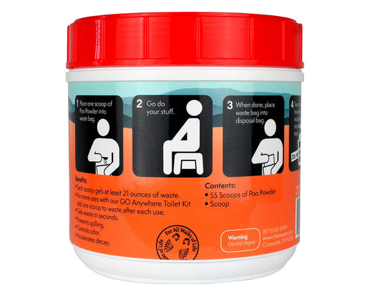 Cleanwaste Portable Mini Poo Powder Deodorizing Waste Treatment - 55 Scoops - Pee and Poop Gelling Powder for Camping, Travel, Emergencies