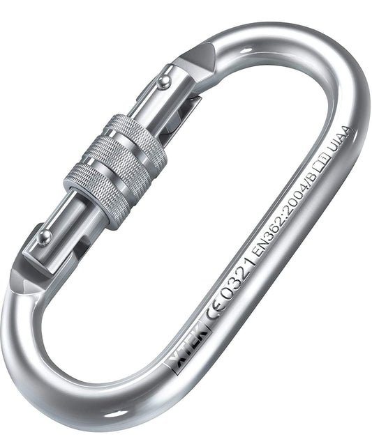 Climbing Carabiner – UIAA CE Rated 25kN/5620LB – Heavy Duty Twist Locking Carabiner Clip - Industrial Strength Large Steel Oval Carabiners - Rock Climbing Caribeener Clips for Rigging, Ropes