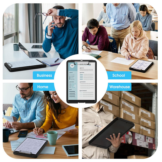 Clipboard with Storage, 8.5 x 11 Storage Clip Board with Low Profile Clip, Heavy Duty Nursing Foldable, Suitable for Classroom, Teacher, Coaches, Office School Supply(Black)