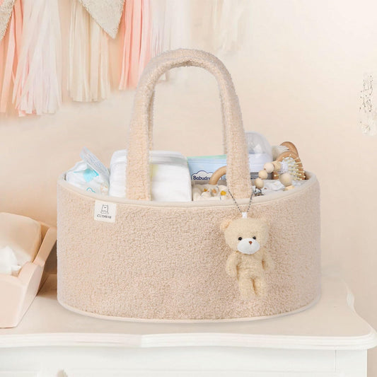 CLYMENE Baby Diaper Caddy Organizer, Nursery Storage Basket for Diapers and Wipes - Newborn Changing Table Essentials, Baby Gift Registry for Baby Shower - Diaper Tote Bag for Car Travel - Ivory