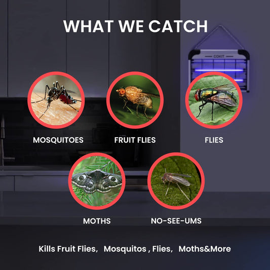 COKIT Bug Zapper Indoor 20W Electric Insect Killer with Bug Collection Tray, Fly and Mosquito Killer for Home, Kitchen, Garage, Patio, Includes 2 Extra Replacement Bulbs