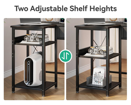 Coleshome 40 Inch L Shaped Gaming Desk with 2 Drawers & Storage Shelves, Computer Desk with USB Ports, Study Writing Table for Bedroom, Simple Modern Laptop Desk for Home Office, Black