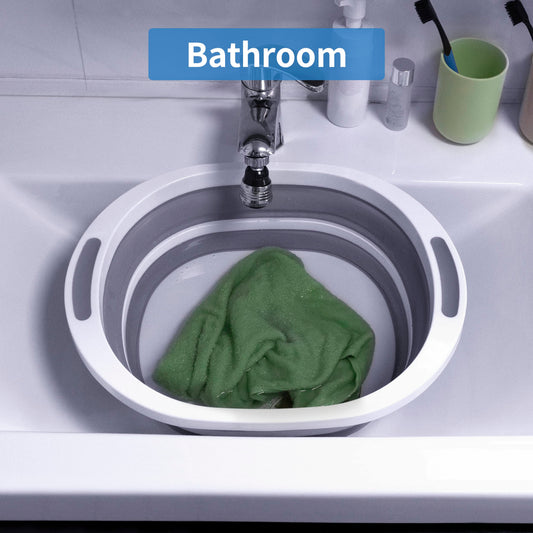 Collapsible Dish Basin & Sink Tub with Drain Plug – 2.4 Gal Baby Bottle Wash Basin, Bottle Washing Bin for RV, Camping, Kitchen | Collapsible Water & Bottle Basin (Grey)