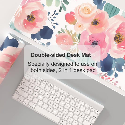 Colorful Star Large Mouse Pad, Pink Floral Desk Mat for Desktop, Women Girls PU Leather Waterproof Gaming Mousepad, Computer PC Laptop Protector Flowers Desk Pads for School Office Home 31.5" x 11.8"