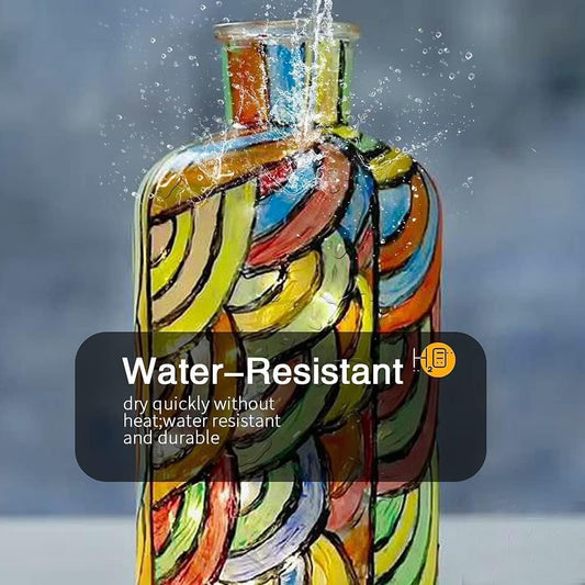 Colorful Stain Glass Paint Set with 6 Brushes, 1 Palette, 24 Color Waterproof Acrylic Enamel Painting Kit for Kids to Arts on Transparent Wine Glasses, Light Bulbs, Windows and Ceramics