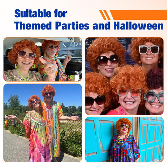 ColorGround Short Fluffy Curly Orange Red Cosplay Wig Women Costume for Halloween