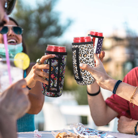 3 Pack Reusable Neoprene Insulated Can Sleeve with Handle for Soda, Energy drink, Pop, Beer, Hard Seltzer, Can Coosies For 12oz & 16oz Can, 12oz Slim can (Floral Sugar Skull(3Pack))
