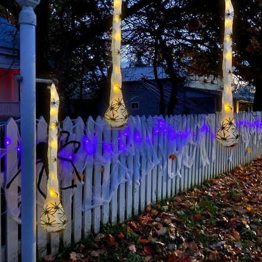 3 Pack Large Halloween Spider Outdoor Decorations - 41” Big LED Light up Hanging Spider Egg Sack Decoration for Indoor Outdoor Halloween Decor Supplies