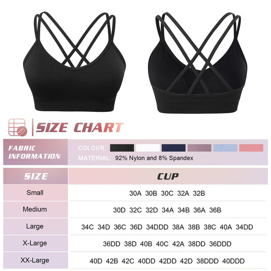 3 Pack Strappy Women Sports Bras Crisscross Back Medium Impact Workout Running Yoga Bra with Padded Removal Cups