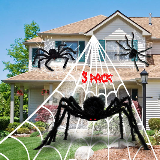 3 Pack Halloween Giant Spider Decorations, Realistic Large Spider Outside Fake Scary Hairy Spiders Sets for Indoor and Outdoor Decorations Haunted House Props Yard Party Garden Decor (59", 49”, 35”)