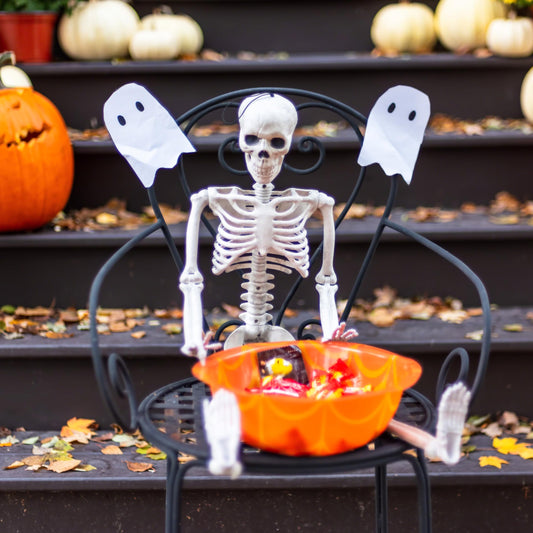 Daricano Halloween Decoration Outdoor 5 Pack Skeleton, 16" Plastic Posable Skeleton with Movable Joints, Small Hanging Skeletons for Halloween Decor, Haunted House Graveyard Props