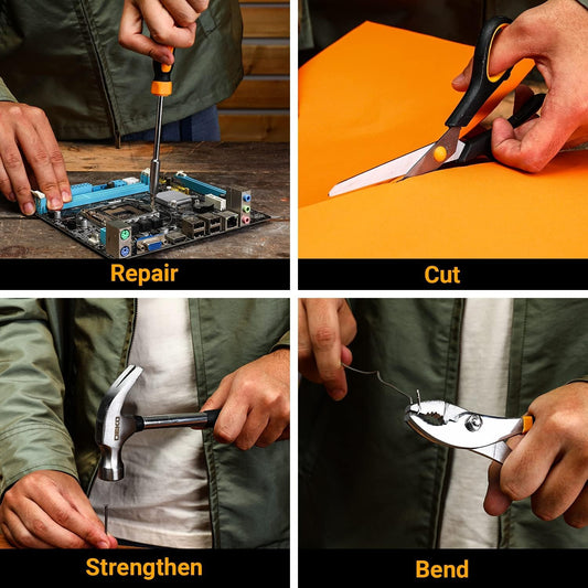 DEKOPRO General Household Hand Tool Kit with Plastic Toolbox Storage Case, All Purpose Home Tool Kit Includes Essential Tools for Office College Repairs, 50 Piece