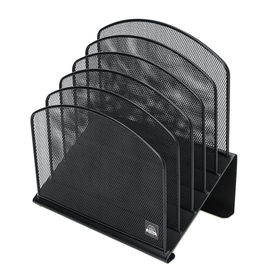 Delifox Inclined Desk File Organizer, 5-Section Vertical File Folder Holder Stand Metal Rack File Sorter for Office Classroom Desktop Organization (Black, 1Pack)