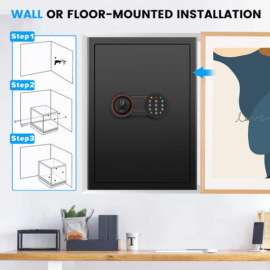 3.3 Cub Large Home Safe Fireproof Waterproof, Anti-theft Fireproof Safe Box with Programmable Keypad, Spare Keys and Removable Shelf, Digital Security Safe for Home Money Firearm Documents Medicines