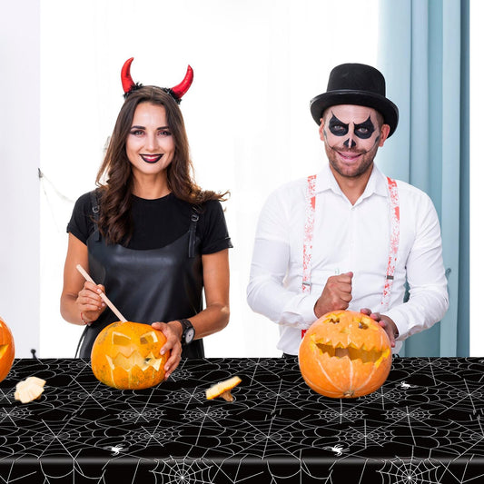 3-Piece 54 x 108 Inch Spider Web Plastic Tablecloth - Spiderweb with Spiders Designs, Disposable Rectangle Table Cover for Dining, Birthday, Halloween, Spooky Themed Decorations (Multicolor)
