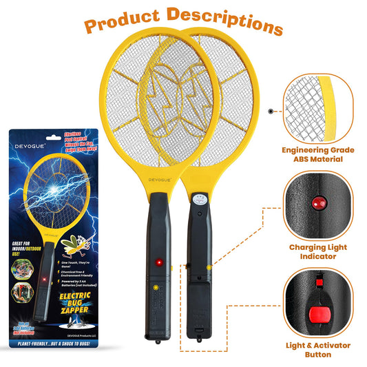 DEVOGUE® Electric Fly Swatter Bug Zapper Battery Operated Flies Killer Indoor & Outdoor Pest Control Mosquito Zapper and Insect Catcher Racket