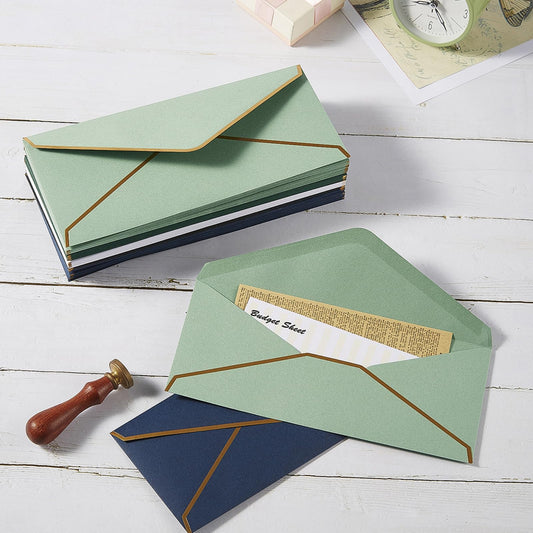 30 Pack Thick #10 Business Envelopes with Gold Border, 4 1/8 x 9 1/2 Thick Paper Standard Envelopes with Stickers for Office, Checks, Letter Mailing, Invoices (Black)