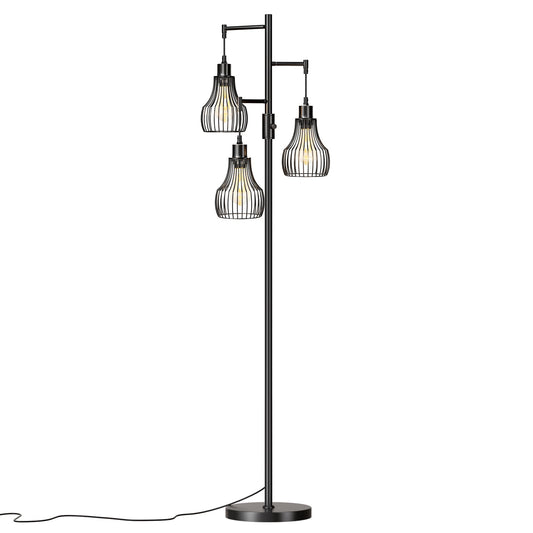 Dimmable Floor Lamp, 3 x 800LM LED Edison Bulbs Included, Farmhouse Industrial Floor Lamp Standing Tree Lamp with Elegant Cage Tall Lamps for Living Room Bedroom Office - Black