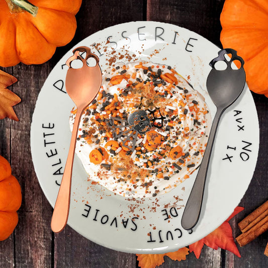 304 Stainless Steel Skull Sugar Spoon Dessert Tea Coffee Stirring Spoon Set of 6 (Black)