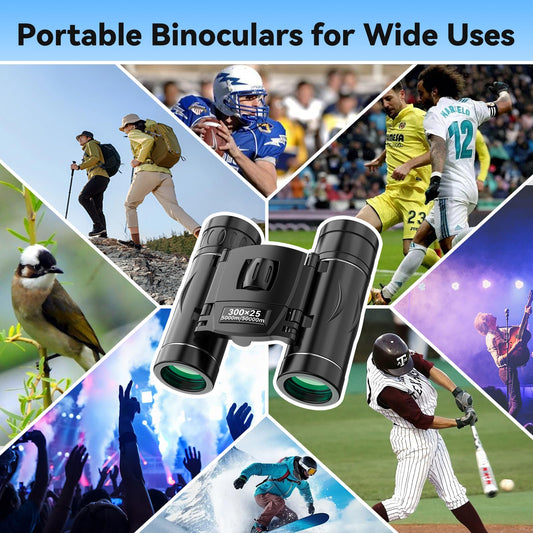 300x25 Binoculars for Adults and Kids, High Powered Mini Pocket Binoculars with Phone Adapter, Waterproof Compact Telescope for Bird Watching, Hunting, Concert, Theater, Opera, Traveling, Sightseeing