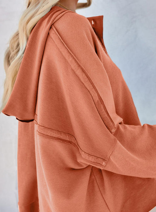 Dokotoo Womens V Neck Hoodies Loose Cropped Long Sleeve Shirts for Women Fashion Button Down Halloween Sweatshirts Orange Large