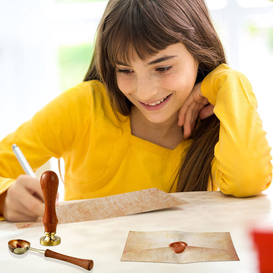33 Pieces Vintage Paper and Envelopes Set, Including 12 Writing Stationery Paper Letter 12 Envelopes Sealing 6 Wax Sticks Seal Stamp Tea Candles and Wax Spoon for Stamp