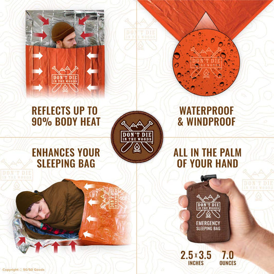 Don’t Die in The Woods - World’s Toughest Survival Bivy [with Hood Extension] Extra-Thick Emergency Sleeping Bag with Ripstop Nylon Stuff Sack - Built with Space Blanket Thermal Mylar
