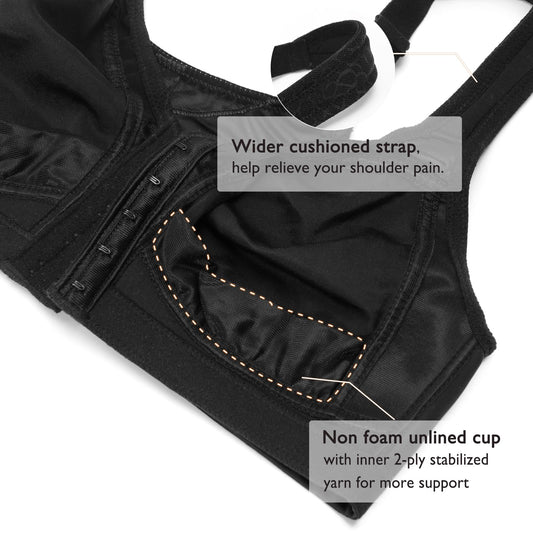 DotVol Women's Full Figure Front Closure Wirefree Jacquard Back Support Posture Bra(Black,44DDD)