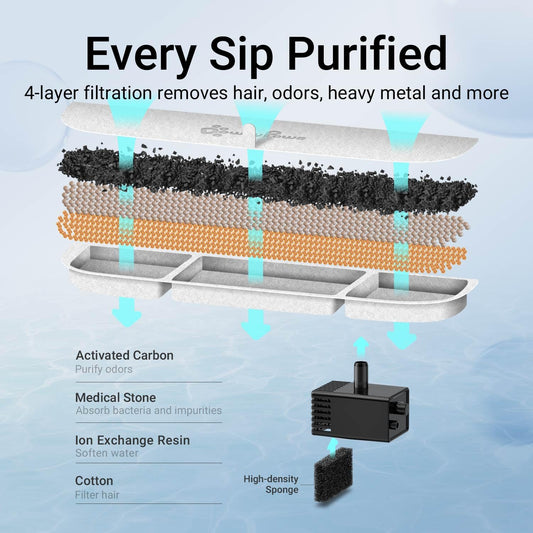 DownyPaws Cat Water Fountain Stainless Steel Wireless, 101 oz/3L FurSink Cordless Cat Water Dispenser for Pets, Battery Operated Dog Drinking Fountain with Motion Sensor, Easy Clean, Black