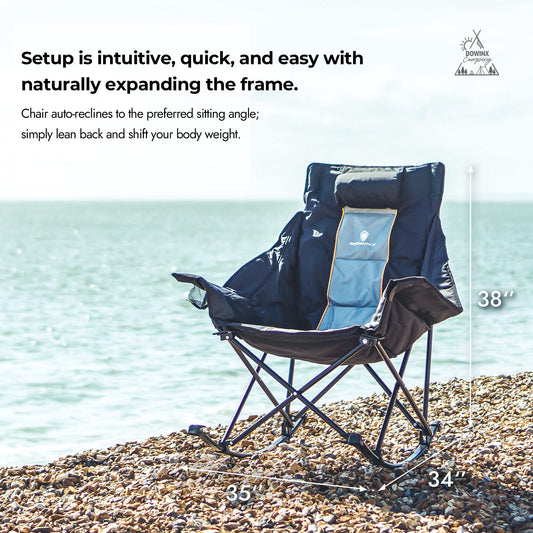 Dowinx Oversized Rocking Camping Chair, Fully Padded Patio Chair with Side Pocket and Carry Bag, High Back Portable Lawn Recliner with Headrest, Support 300 lbs, Grey