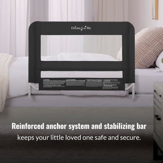 Dream On Me Lightweight Mesh Security Adjustable Bed Rail for Toddler, Breathable Mesh Fabric, Suitable for All Types of Beds, Reinforced Anchor System Bed Guard Rail, Black