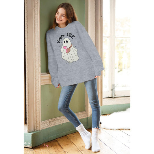 DUTUT JEE Ghost Halloween Sweatshirt - Women's Funny Spooky Season Pumpkin Graphic Long Sleeve Pullover Top Light Grey