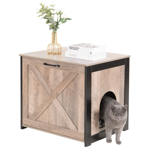 Dwanton Cat Litter Box Furniture Hidden, Cat Litter Box Enclosure, Reversible Entrance Can Be on Left or Right Side, Indoor Cabinet, Wooden Washroom, End Table, Nightstand, Greige, 23.6" L
