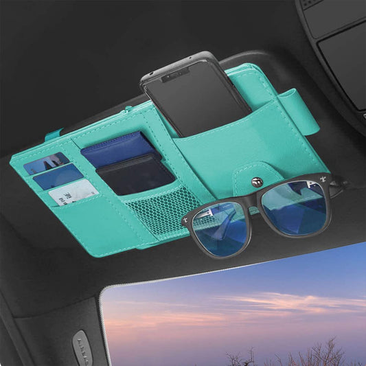DWARFOO 1 Pack Car Sun Visor Organizer, Sunglasses Holder for Car Sun Visor, Auto Interior Accessories Pocket Organizers Can Store for Sunglasses, Documents, Cards, Pen, Drivers License (Blue)